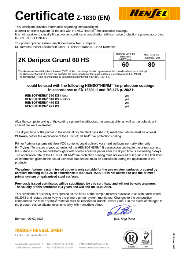Fire Protection Test Report 2K-Deripox Grund 60HS_60 µm_EN