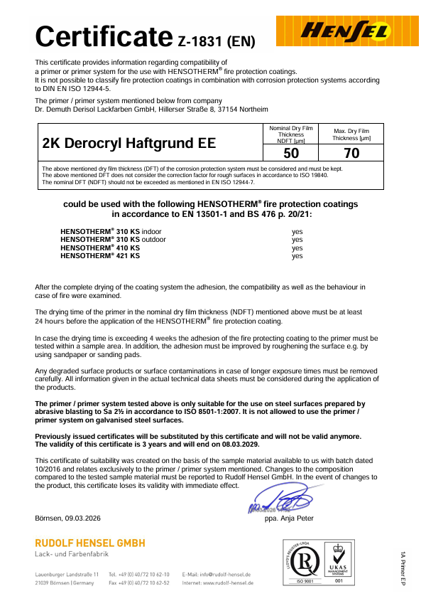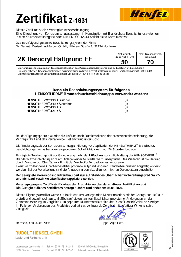 Prüfbericht Brandschutz 2K-Derocryl Haftgrund EE_50 µm